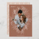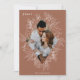 A modern and elegant holiday card that frames your vertical or portrait orientated photo in a beautifully detailed diamond shaped frame with holly leaves, berries, and winter leaves on a rich earth toned cinnamon brown background. "PEACE" appears at the top left, with your family name along the bottom. The year is tucked elegantly into the finely detailed white botanical frame. A delicate and refined nature inspired choice for your Christmas 2021 cards.