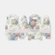 A wedding favor box featuring delicate hydrangea flowers in shades of dusty rose, light purple, and blue.