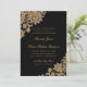 Delicate Lace Corner Black and Gold Script Wedding Invitation