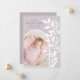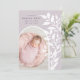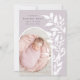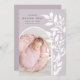 Chic and modern birth announcement features a single vertical/portrait oriented photo in an arched layout, with climbing vines of white botanical leaves along the right side. Personalize with your baby's name, birth date, and stats, and add a personal message to the back, along with an additional photo.