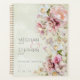 This wedding planner design features a soft realistic floral side spray of white, blush pink, and cream roses and lilies on a soft light sage green watercolor background. The back continues the design. This design is part of the Delicate Modern Pink Blush Rose and Lily wedding suite of cards created by Simply Farmhouse Press.