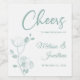 Elegant customisable wine labels for your wedding reception, featuring beautiful and delicate mint green orchids line drawing on one side, over a classic white background, and the wording "Cheers to the wedding of" in green fonts. Easily edit the template fields to add the bride and groom names in a classy green script, and your wedding date in a modern all-caps font.