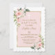Delicate Pink Blush Flowers Cross Gold Baptism Invitation