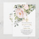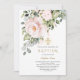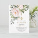 Delicate Pink Flowers Gold Cross Girl Baptism Invitation