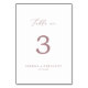 This delicate rose gold calligraphy table number is perfect for a modern wedding. The romantic minimalist design features lovely and elegant dusty rose blush pink typography on a white background with a clean and simple look. The card prints on the front and back (double-sided). Items are printed exactly as they appear on your screen when you add to cart, so personalise and add each table number that you need to your cart individually.