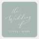These delicate sage green wedding envelope seals are perfect for a spring or summer wedding. The romantic minimalist design features lovely and elegant white calligraphy on a dusty green background with a clean and simple look. Personalise the label with the names of the bride and groom.
