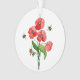 Delicate scarlet poppy flower and bumblebees ornament