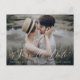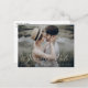Stylish save the date photo postcard featuring your favourite engagement photo with Save The Date in an elegant calligraphy script font overlay. Personalise these save the date announcements with your names, wedding date, and the city/state of your wedding venue. The reverse side of the save the date postcard offers space for your return address and wedding details. Perfect for sharing your engagement photo and important wedding information with family and friends.