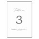 This delicate silver calligraphy table number is perfect for a modern wedding. The romantic minimalist design features lovely and elegant silver grey typography on a white background with a clean and simple look. The card prints on the front and back (double-sided). Items are printed exactly as they appear on your screen when you add to cart, so personalise and add each table number that you need to your cart individually.