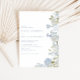 Celebrate your special day with our enchanting wedding invitation featuring a romantic and delicate soft dusty blue watercolor floral border design. Adorned with beautiful blue hydrangea, delphinium, white roses, and greenery, this invitation exudes elegance and charm. The timeless minimalist dusty blue font adds a touch of sophistication, perfect for any wedding theme or style. Set the tone for your dream wedding with this exquisite invitation that will enchant your guests and create lasting memories of your love story.
