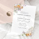 Elegant floral wedding invitations featuring your names and wedding details at the centre of the design surrounded by bouquets of watercolor flowers and foliage in shades of peach, ivory, orange, blush pink, purple, yellow, and green. The stunning floral invite is perfect for spring and summer garden weddings.