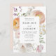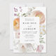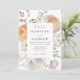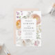 Elegant floral wedding invitations featuring your names and wedding details framed by watercolor flowers and foliage in shades of peach, ivory, orange, blush pink, purple, yellow, and green. Personalise the spring floral wedding invitation with your names and wedding details below. The stunning floral invite is perfect for spring and summer garden weddings.