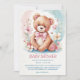 Delicate watercolor forest bear in flowers baby shower invitations