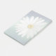 A serene photo of a single delicate with daisy. Soft dainty white petals with a bright yellow centre. The background is a misty greenish blue colour.