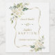 Delicate White Flowers Gold Frame Baptism Wine Label