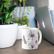 Delicate white cattleyas orchid flowers coffee mug. Personalise with Name or text, font type, and colour to your preference.