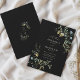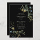 Delicate Wildflower Modern Boho Wedding Black Invitation