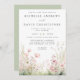 This design features a delicate watercolor illustration of wildflowers in shades of green and pink.