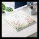 This design features a delicate watercolor illustration of wildflowers in shades of green and pink.