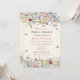 This is a delicate and whimsical bridal shower invitation. The design features a colourful and bohemian field of wildflower florals in pretty shades of blue, terracotta, pink, purple and yellow. The butterflies and bees add the finishing botanical elegant touch.