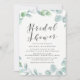 Elegant bridal shower invitations are perfect to use for spring and summer bridal showers. The design features a modern green watercolor botanical wreath, stylish calligraphy, and a white background (change the background colour with the Customise tool).