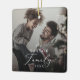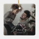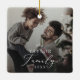 This delicate yearly family dark overlay photo keepsake ceramic ornament is the perfect modern Christmas tree decoration. The romantic minimalist design features lovely and elegant black typography with a clean and simple look. Personalise your double-sided keepsake ornament with a photo, your family name and the year.