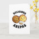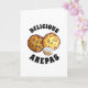 Design features an original illustration of a pair of delicious cheese arepas. Arepas, a South American food especially popular in Venezuela and Colombia, are a maize (ground corn meal) cake served with various fillings or accompaniments such as cheese, butter, meat, vegetables, or beans. They are sold in a variety of places including street vendors, supermarkets, market stalls, fairs, and annual arepa festivals, and can be eaten as a snack or an accompaniment to a heavier meal.