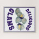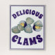 Design features an original illustration of delicious New England clams in shells. Ideal for anyone who loves a summer clambake, or clam digging day at the beach!