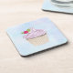 Coasters with an illustration of a delicious cupcake with pink swirls and a berry with leaves nestled in the frosting.