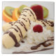 For those who love yummy food art. What a sugar rush - a photo of a delectable banana dessert with chocolate drizzled over top. Whipped cream in the shape of a rosette with a cherry on top. A sweet strawberry, some kiwi and orange slices can be seen in the background.