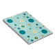 Microscopic diatoms, single-celled algae with a cell wall made of silica, create a fun pattern on a sea of pale turquoise and show off some of the many shapes that they come in, including circles, stars, squares, and others.