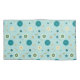 Microscopic diatoms, single-celled algae with a cell wall made of silica, create a fun pattern on a sea of pale turquoise and show off some of the many shapes that they come in, including circles, stars, squares, and others.
