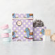 Take a stroll with this fun, stylised pram decorated with bright pink, orange, green, and blue stripes on the cover and a pattern reminiscent of wooden blocks on the body. The pastel mint and cream zigzags in the background accent the brightly coloured stroller. Customise the monogram block with the soon-to-be little one's last initial to create a truly unique wrapping paper for your chosen gift. Be sure to check out the full Delightful Hearts Rocking Horse collection for more great gifts and products for a baby shower or the little one in your life.