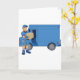 This design is a delivery man and van. The delivery van is blue and the delivery man is standing outside it carrying a box for delivery. This delivery man and van design looks great