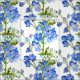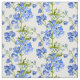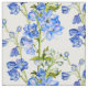 Floral Delphiniums fine art blue, green on white fabric. Ideal for quilting and other sewing projects. Delphinium print coloured from a original artwork in watercolor and gouache by Sarah Trett.