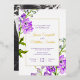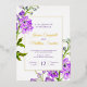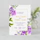 Beautiful delphinium spikes painted purple botanical art watercolor and gold foil or foil of your own choice garden summer wedding invitation. Edit this wedding invitation with your own name, event details, and wording and engagement or another photo on the reverse. Other matching wedding items available. Unique design and original watercolor fine art painting by Sarah Trett. www.sarahtrett.com for www.mylittleedenweddings.com
