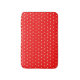 This rug is just as pictured! Vibrant Red and very soft material, nice to step in out of the tub! Matches my set of accessories and shower curtain! A must have to add some whimsy to your bathroom! Very nice, vibrant and clear print! Beautiful!