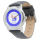 This red, white & blue Democratic donkey is perfect for the budding politician. The background is white to accent the centre red, white and blue donkey and text. The existing text reads, "Democrat in training" and can be changed to personalise it with your own words. The complimentary outer blue ring is the background for the red and white numbers to mark each hour.