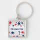 This keychain is shown with a stars and stripes art print design with democrat text.