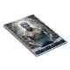 Mystical warrior with horns and ornate gold armor working intently on a laptop in a baroque setting. Powerful motif for fantasy fans, gamers, and tech enthusiasts with a sense of epic aesthetics.
