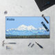 A digital rendering of Denali, also known as Mt. McKinley, North America's highest mountain at 20,237 feet above sea level. Customisable text reading "Alaska" also appears. The word "denali" derives from a Koyukon Athabaskan word meaning "The High One." This image is derived from a US Fish And Wildlife Service photograph. While the peak of Mt. Everest is higher above sea level than that of Mt. Mckinley if you measure from the base of the mountain to its peak Mt. Mckinley is tallest mountain in the world.