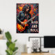 This painting is a bold and textured portrait of a rock musician in a denim jacket and jeans, intensely focused on playing an electric guitar. The artwork features a heavy impasto style, with thick, energetic brushstrokes that give the piece a dynamic and raw feel. The background is an abstract blend of red, purple, and black with the word "ROCK" prominently displayed, emphasizing the theme of the music.