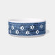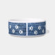 Denim and White Paw Prints Design Pet Bowl, with customisable personalisation. Note: This item has been created with an image of denim.