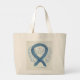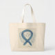 Tote bag features denim blue awareness ribbon art. Rare disease uses blue denim colour for its awareness ribbon. It is a play on the words jeans / genes. Rare disease also use a zebra stripe ribbon. Rare diseases are rare in that few people have a particular disease, but are common in that many people worldwide have rare diseases. Let this denim blue ribbon help bring awareness to these cause of rare diseases!