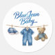 Denim Bear Clothesline Boy Blue Jean Baby Shower Classic Round Sticker