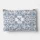 Denim Blue Fancy Floral Pattern Personalised Accessory Pouch
