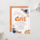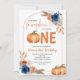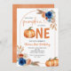 Denim Blue Rust Orange Pumpkin 1st Birthday Invitation,