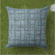 Denim Blue X's and O's Pattern Grey Check Outdoor Pillow. An artsy layered design with blues, greys, and blacks. A wonderful indoor or outdoor decor piece for anyone with eclectic and urban style to enhance your chair, couch, or bed.