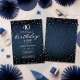 A simple, modern, elegant and chic birthday party invitation template featuring a blue denim background, the word BIRTHDAY covered in white diamonds (simulated, not real diamonds) and in modern calligraphy script, and rustic typography in white. A chic "denim and diamonds" design for a young woman on her 40th birthday!