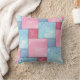 An pretty throw pillow or cushion, with a faux patchwork of pink and blue denim pattern, from a handpainted watercolour design by Judy Adamson. The pattern on the reverse side coordinates but is not identical.